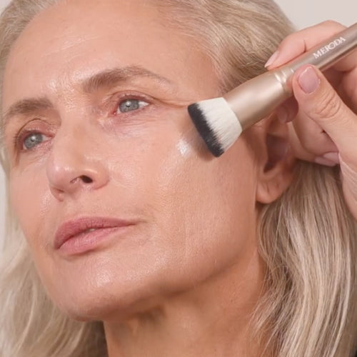 Für die besten Ergebnisse empfehlen wir dir, die Foundation mit einem Brush aufzutragen. Die Technik hilft dir dabei, die Pigmente besser in die Haut einzuarbeiten und gleichzeitig Schlieren zu vermeiden.