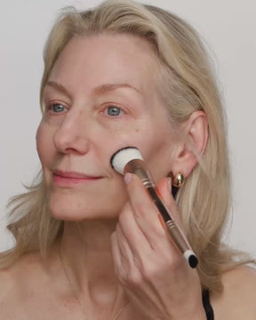 - Verstreichen Sie die Foundation vom Zentrum des Gesichts nach außen mit einem Pinsel